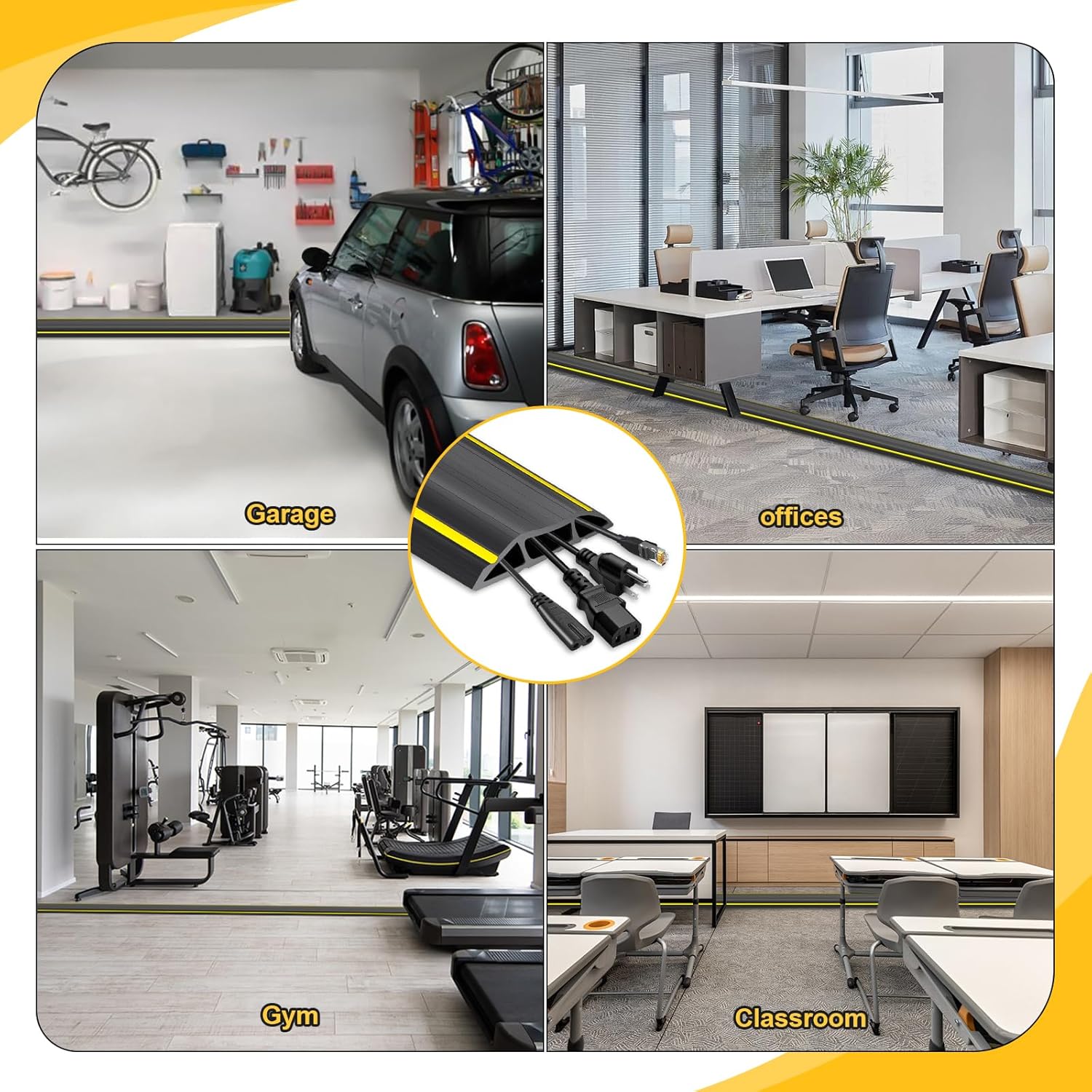 - PERFECT INDOORS & OUTDOORS: Cable protectors and cord covers are suitable for offices, homes, workshops, warehouses, concerts / events, or outdoor settings. Slim size fits under furniture and along any surface or edge. Can be used as electrical cord protector or extension cord cover