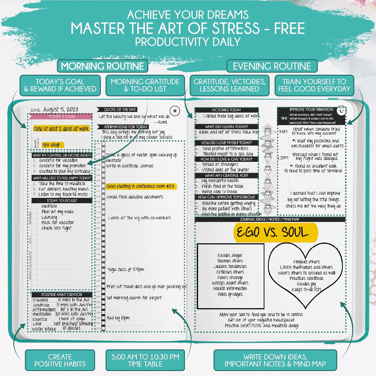 - LUXURIOUS AND TOP QUALITY - Self-care journal for women and men, perfect for entrepreneurs, professionals, college students and everyone who has burning desire to turn dreams into reality! FREE VIDEO MINI-COURSE: You will learn 10-min morning routine used by the most successful people to 10-fold your productivity, focus, happiness & passion! You will master setting goals & fix procrastination!