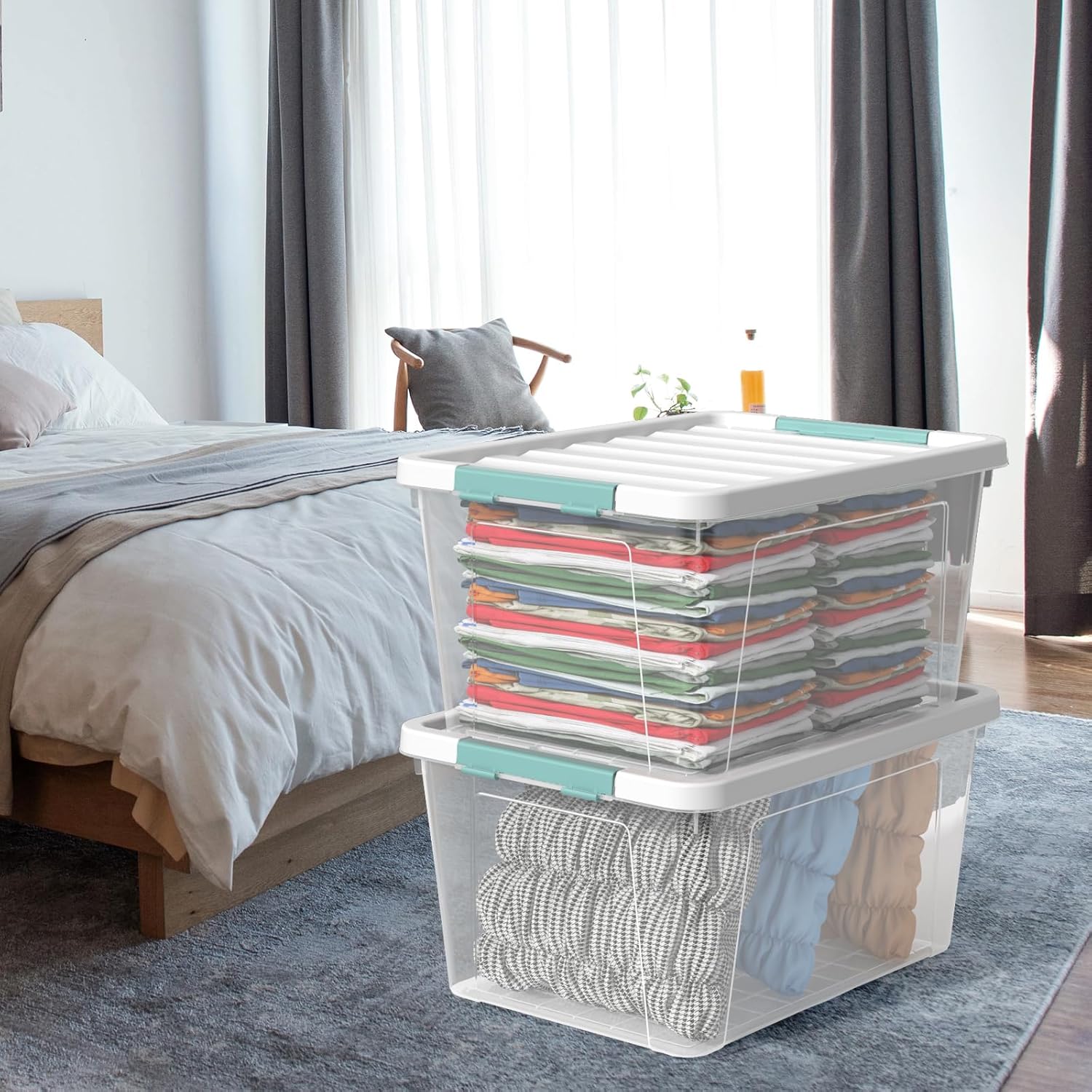Pekky 6 Packs Clear Large Storage Containers Bins with Lid, Multipurpose 35 Quart Plastic Latch Box Tote