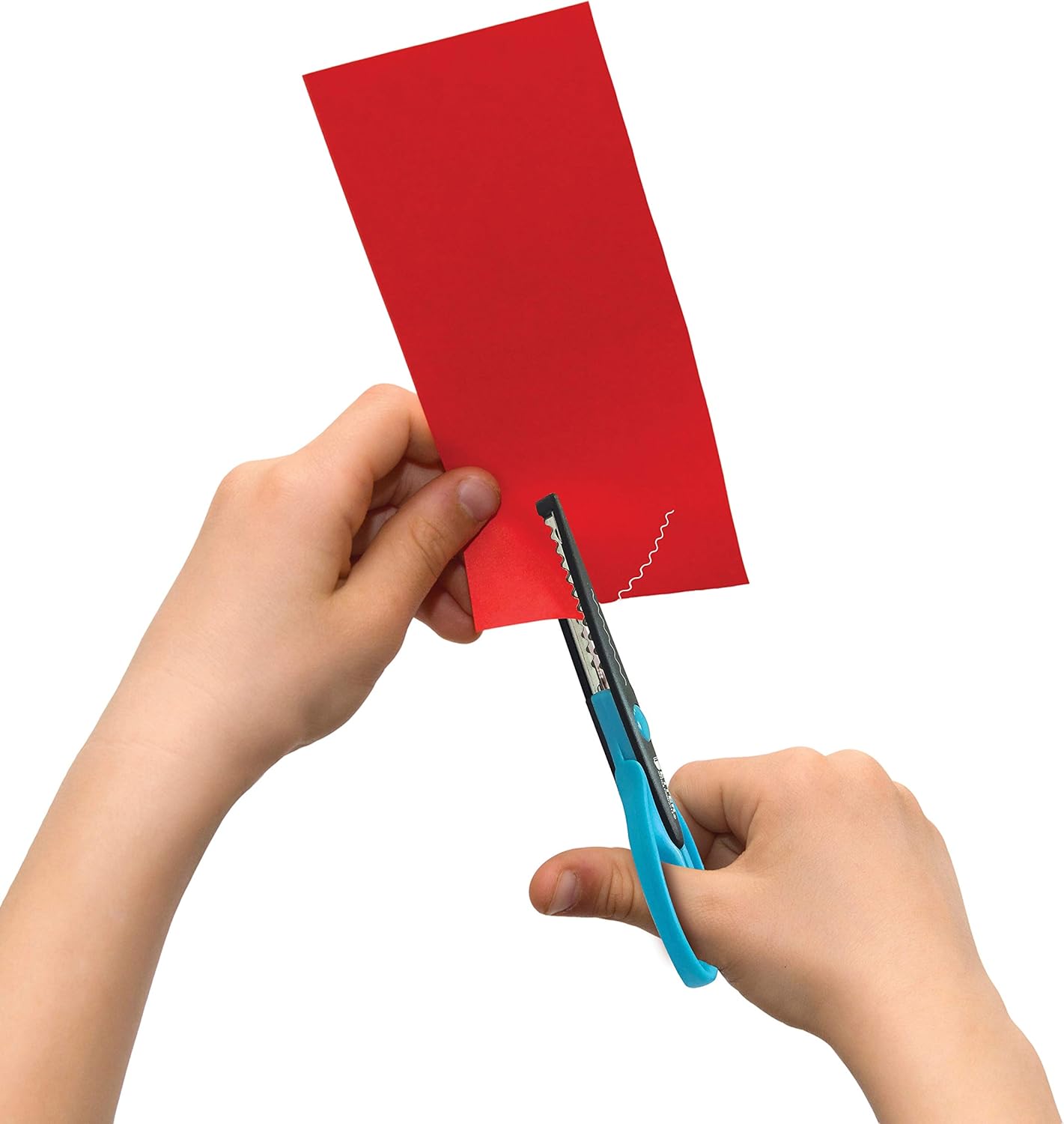 - 18-PACK: 6-inch long decorative edge scissors made of sturdy plastic with 2.5" steel blades, each with its own unique edge design and unique handle color