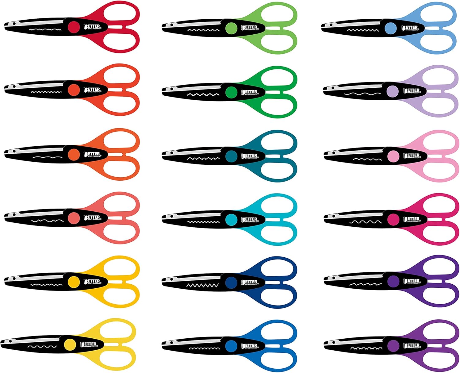 Better Office Products 18 Piece Decorative Edge Craft Scissors, 18 Colors and Edge Designs, 6 Inch Length, 2.5 Inch Blades, Assorted 18 Count Edger Scissors
