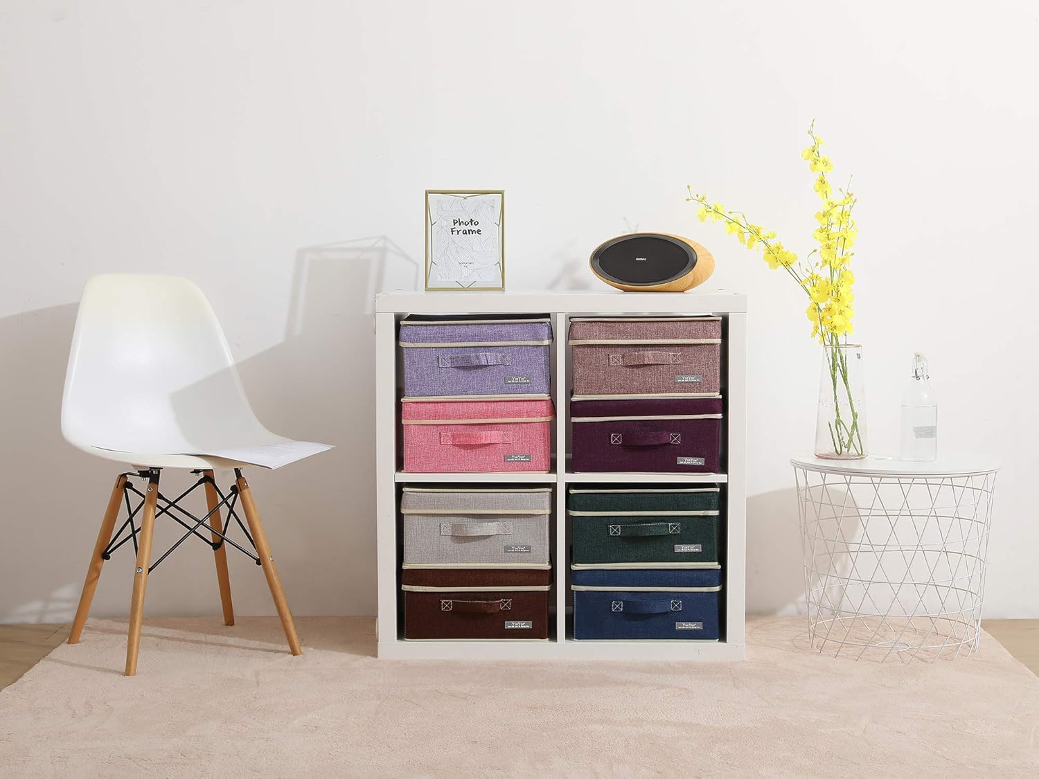 - 【SPLENDID DESIGN】Our Fabric Foldable Storage Box With lids with can be stacked , Collapsible Design With Handles ,easy to storage; with four different colors, they can perfectly blend into your home or office decoration .