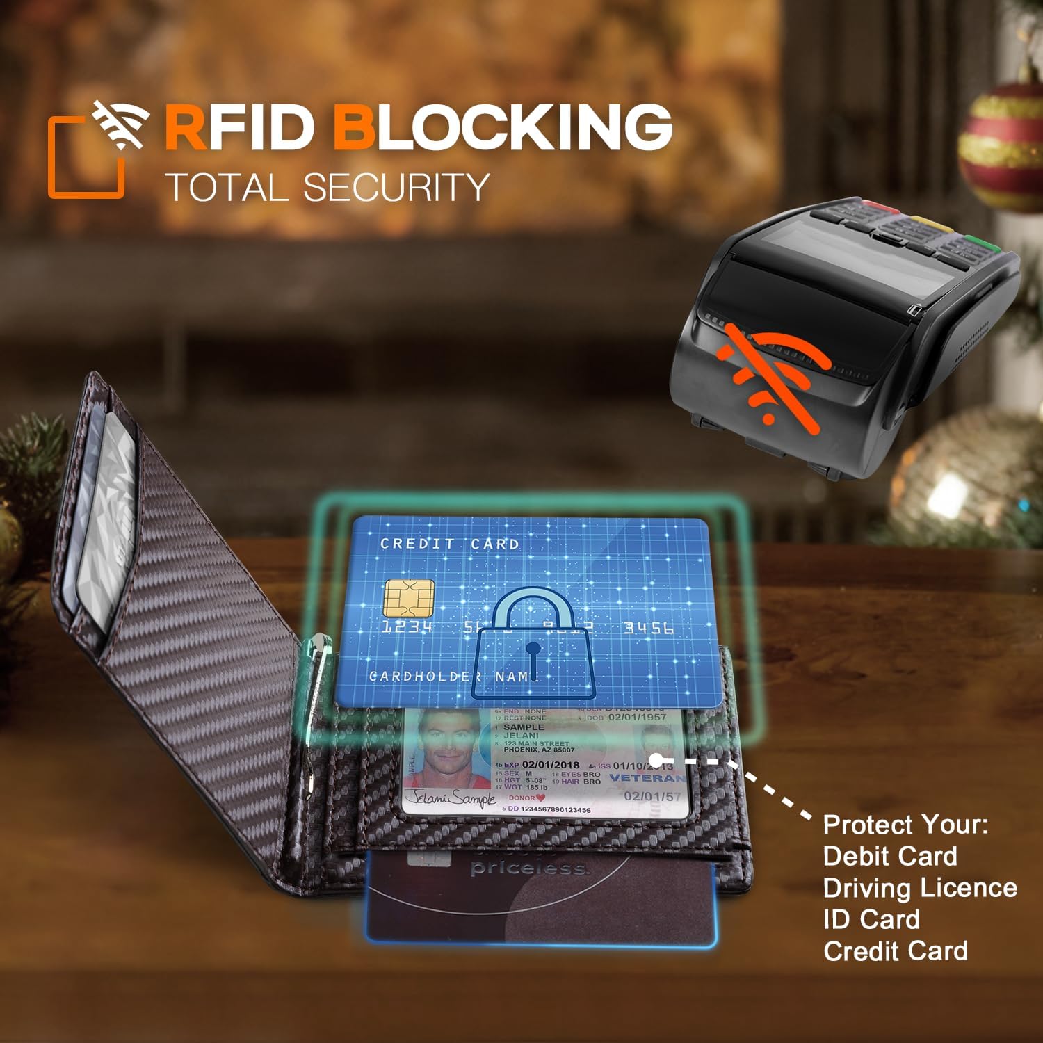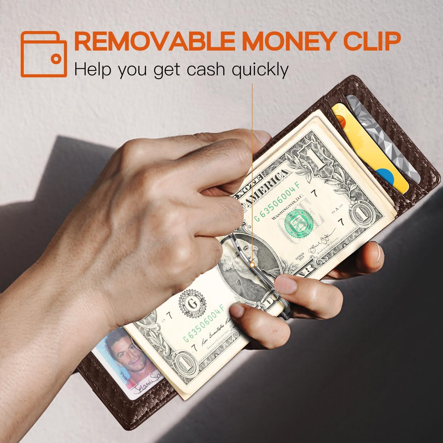 Slim Wallet for Men Genuine Leather RFID Blocking Bifold Minimalist Front Pocket Mens Wallet with Money Clip Thin Gift Box