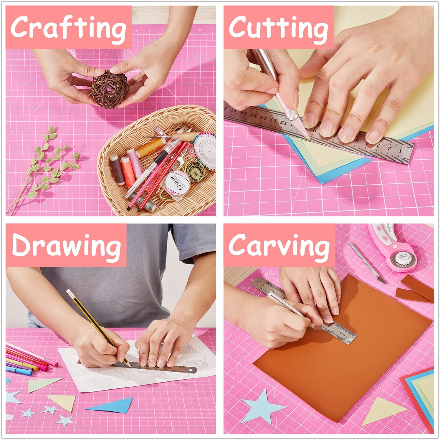 - MAT SIZE: 18 x 24 inches (A2), Double sided(metric&inch), thickness 3 MM. Perfect for small and medium craft and sewing projects.Ideal for as a craft cutting board to use with rotary or straight-edge blades. A great gift choice for any quilters or hobbyists to add to their sewing accessories and quilting supplies!