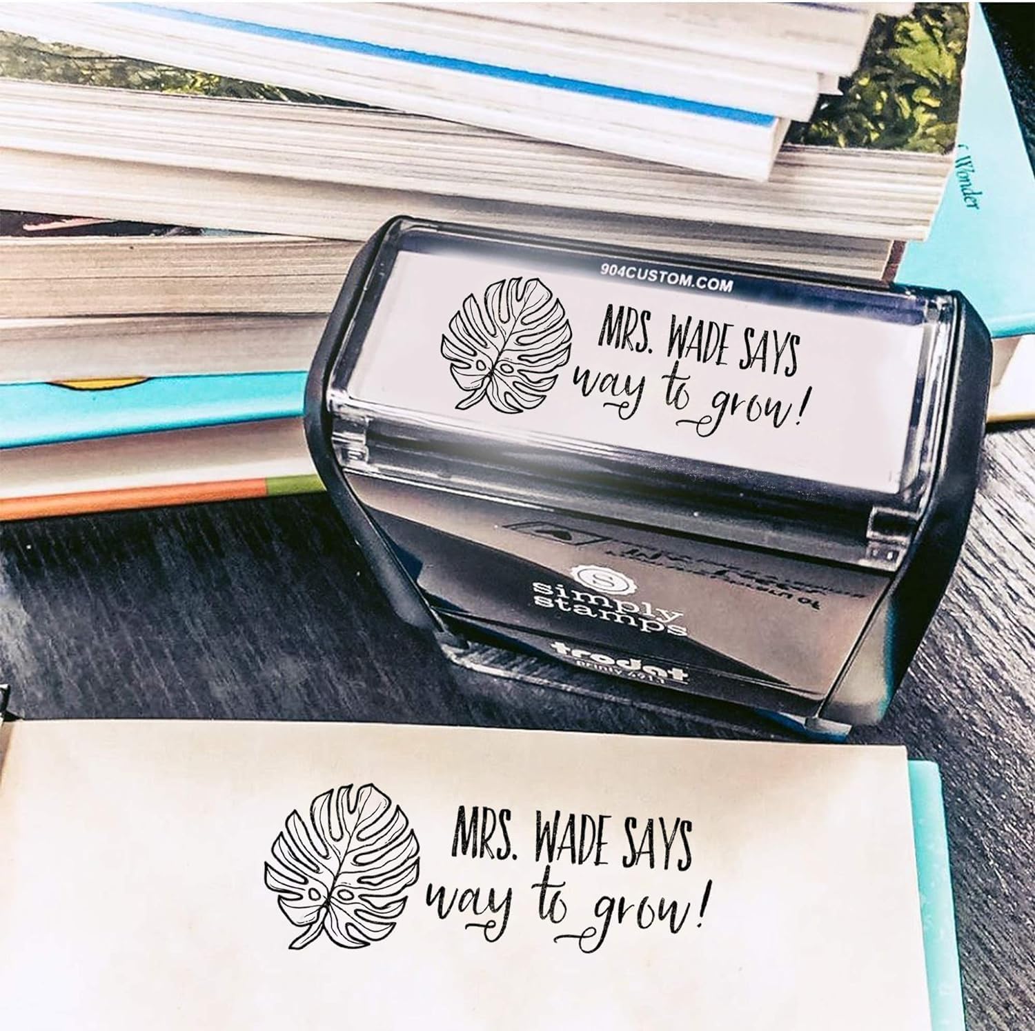 Custom Self-Inking Teacher Stamps | 49 Designs | Fun Phrases | Grading Made Easy | Classroom and Library Book Stamps (Way to Grow, Large)