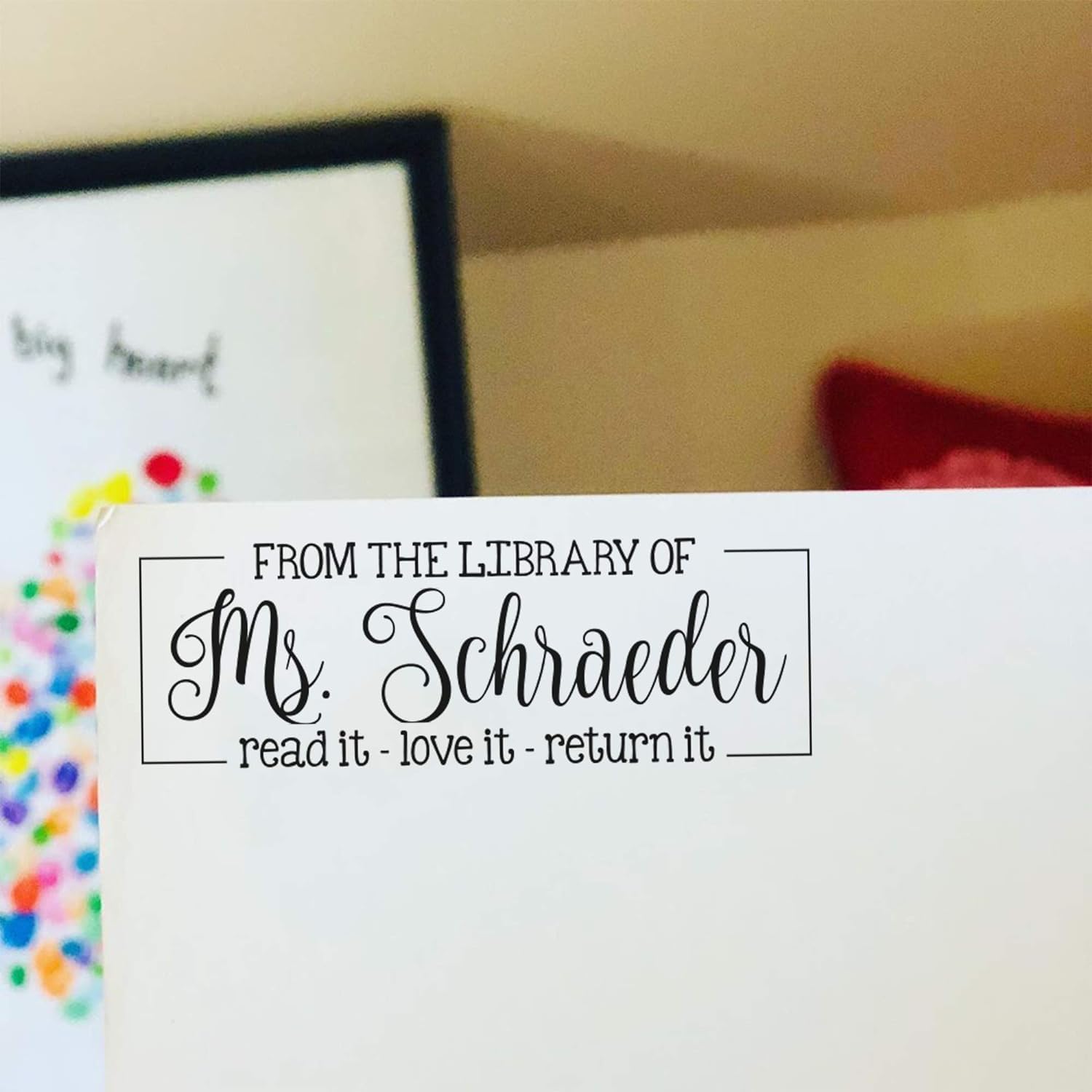 Custom Self-Inking Teacher Stamps | 49 Designs | Fun Phrases | Grading Made Easy | Classroom and Library Book Stamps (From The Library of - Read, Love, Return, Large)