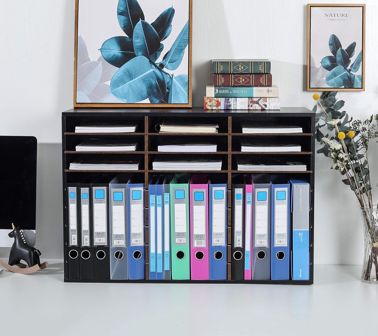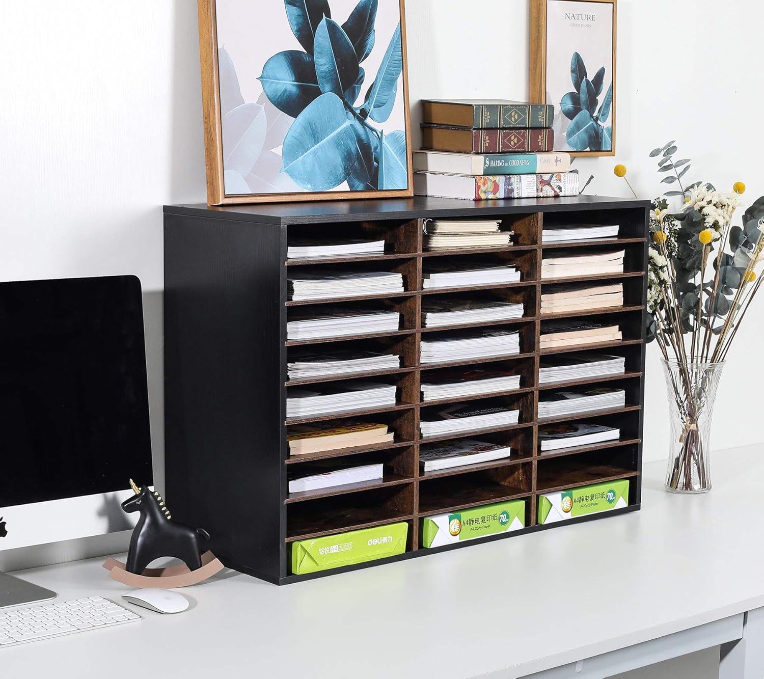 TQVAI Wood Adjustable Literature Organizer Desktop File Sorter Mail Center Paper Storage Cabinet Home & Office Mailbox School Classroom Keepers, 27 Slots Compartments, Black/Archaize