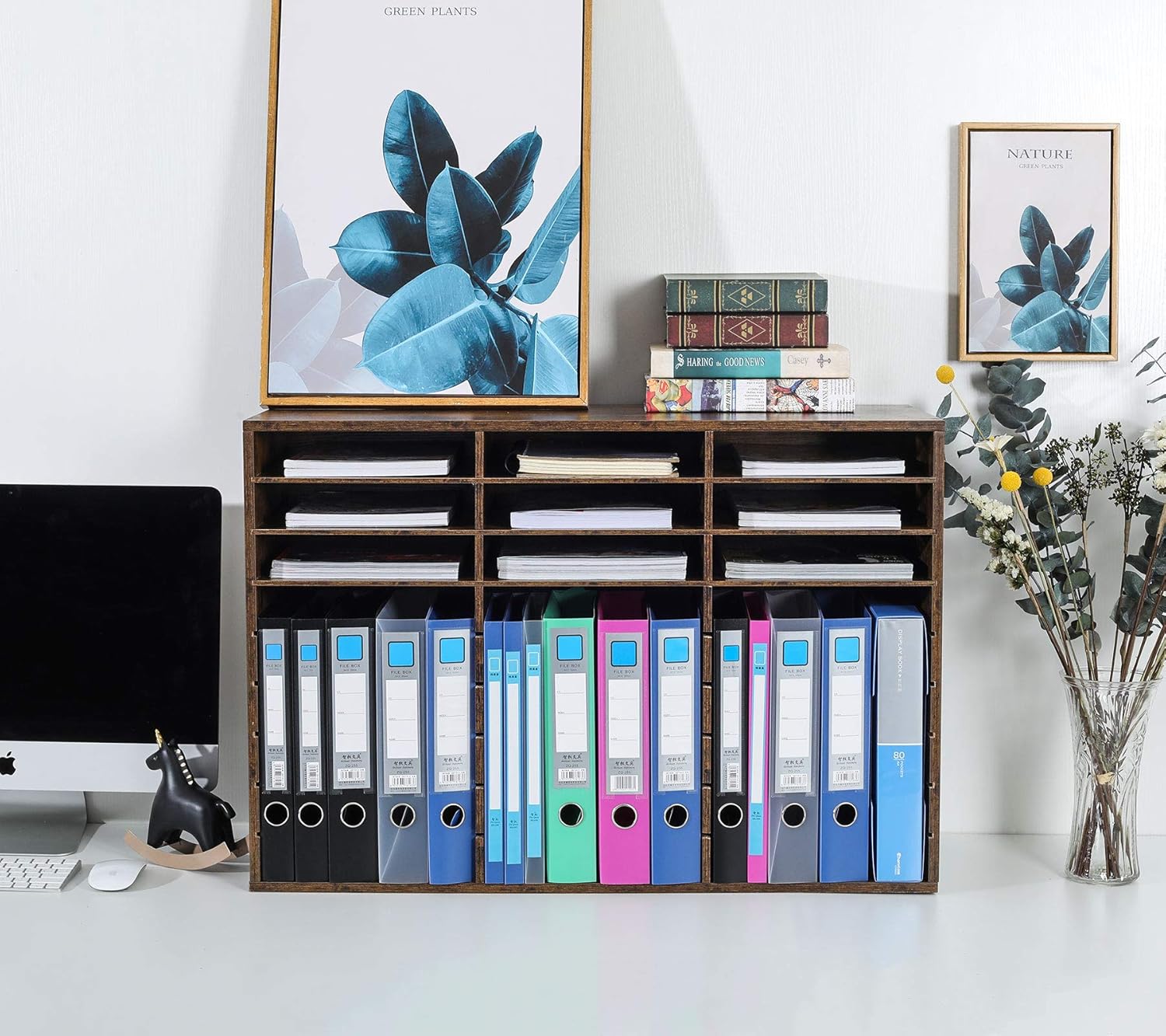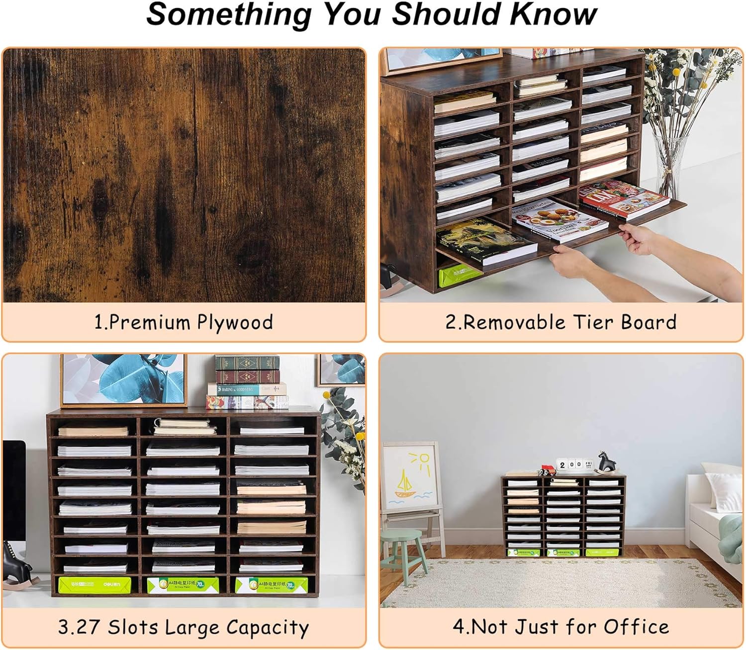 TQVAI Wood Adjustable Literature Organizer Desktop File Sorter Mail Center Paper Storage Cabinet Home & Office Mailbox School Classroom Keepers, 27 Slots Compartments, Archaize
