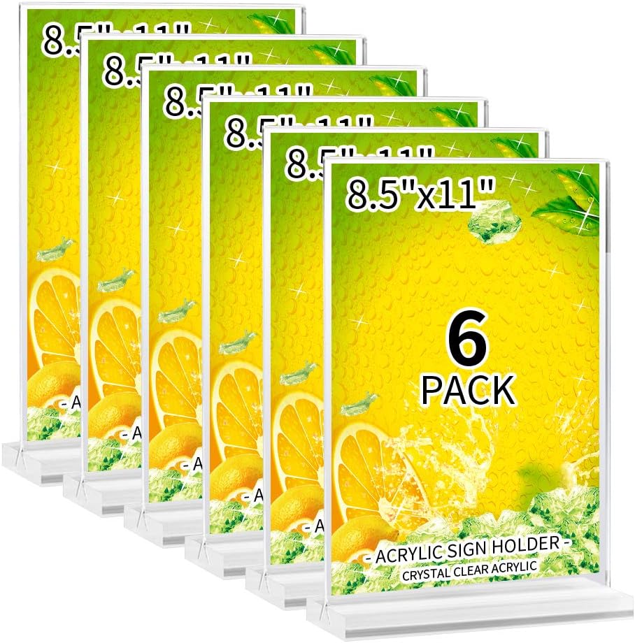 Acrylic Sign Holder 8.5 x 11-Acrylic T-Shaped Desktop Display Stand, Sign Holder,Menu ad Frame. Suitable for Restaurants, Promotions, Photo Frames, Events, Meetings (6 Pieces)