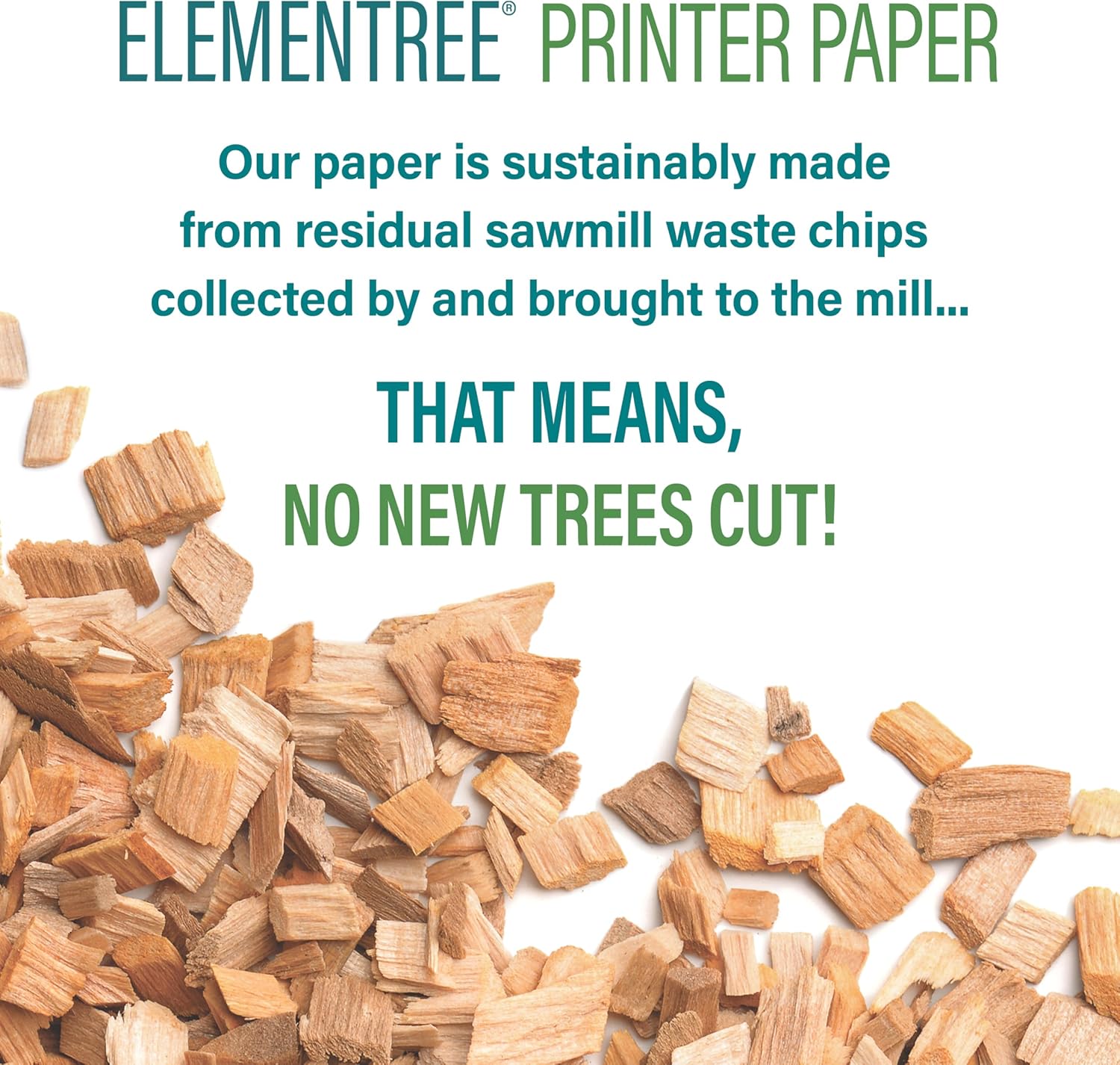- Elementree printer paper is made in the USA using leftover sawmill wood chips - no new trees are harvested. Its pulping yields 50% more paper from the same amount of wood than standard copy paper