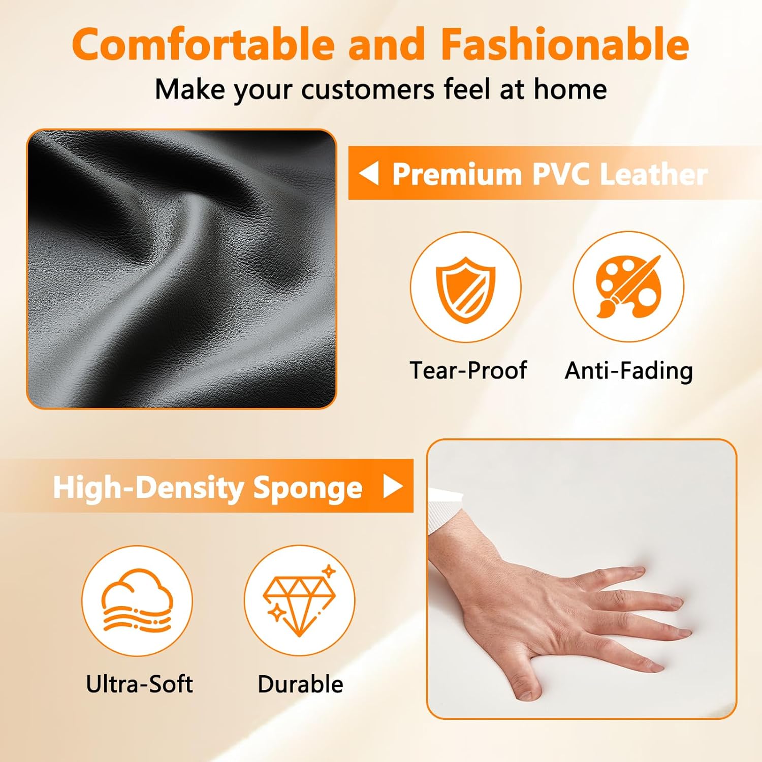 - COMFORT IS KEY: Featuring comfortable foam filling back and seat cushion, together with PVC leather upholstery padded armrest that provides an excellent sitting experience.