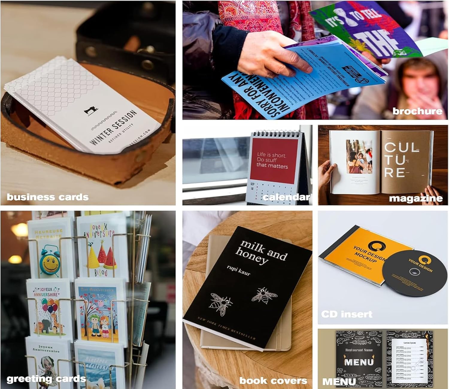 - USED FOR: Greeting Cards, calenders, photo , art ,menu printing , brochures ,invitations,diy paty decorations and more. .