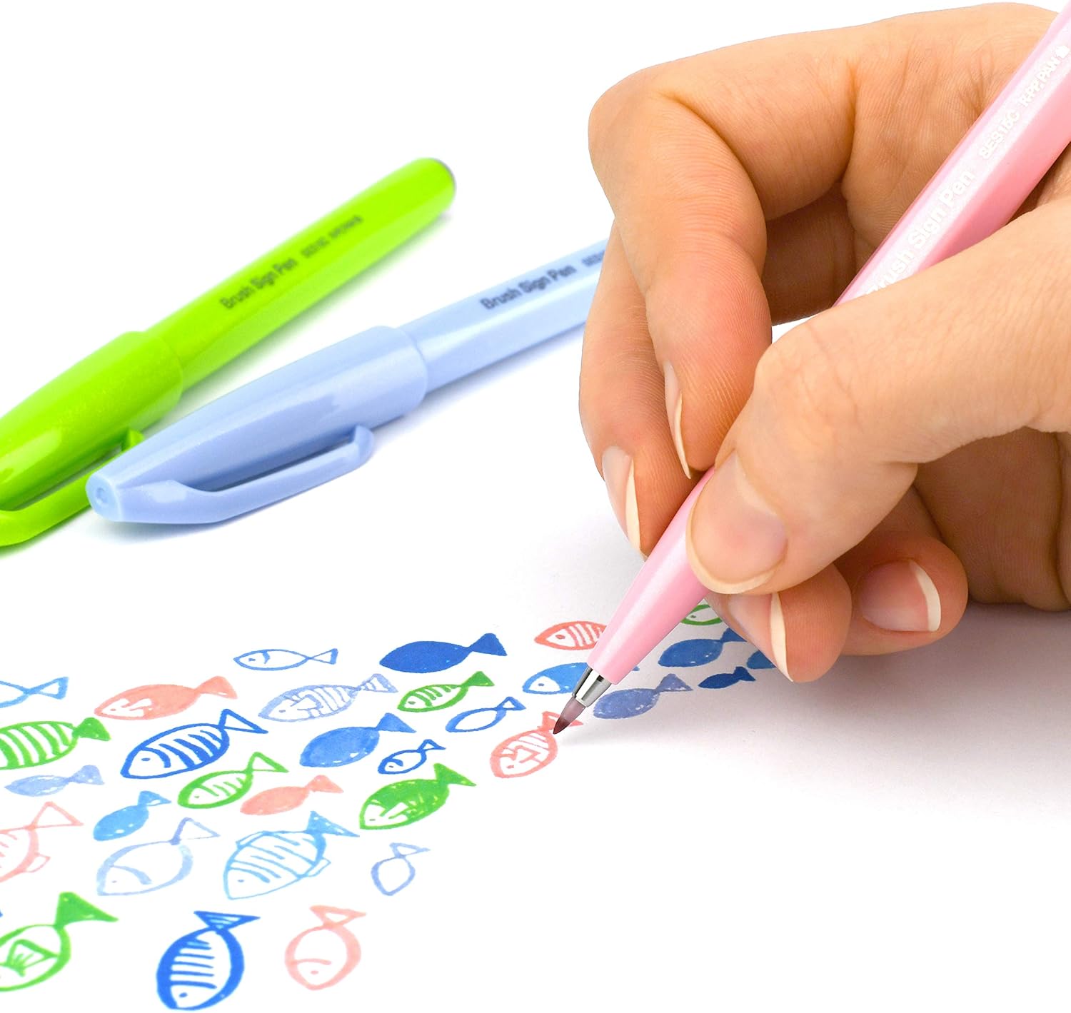Pentel Arts Sign Pen Brush Tip, Assorted Colors, 12 Pack Box (SES15C2PC12)