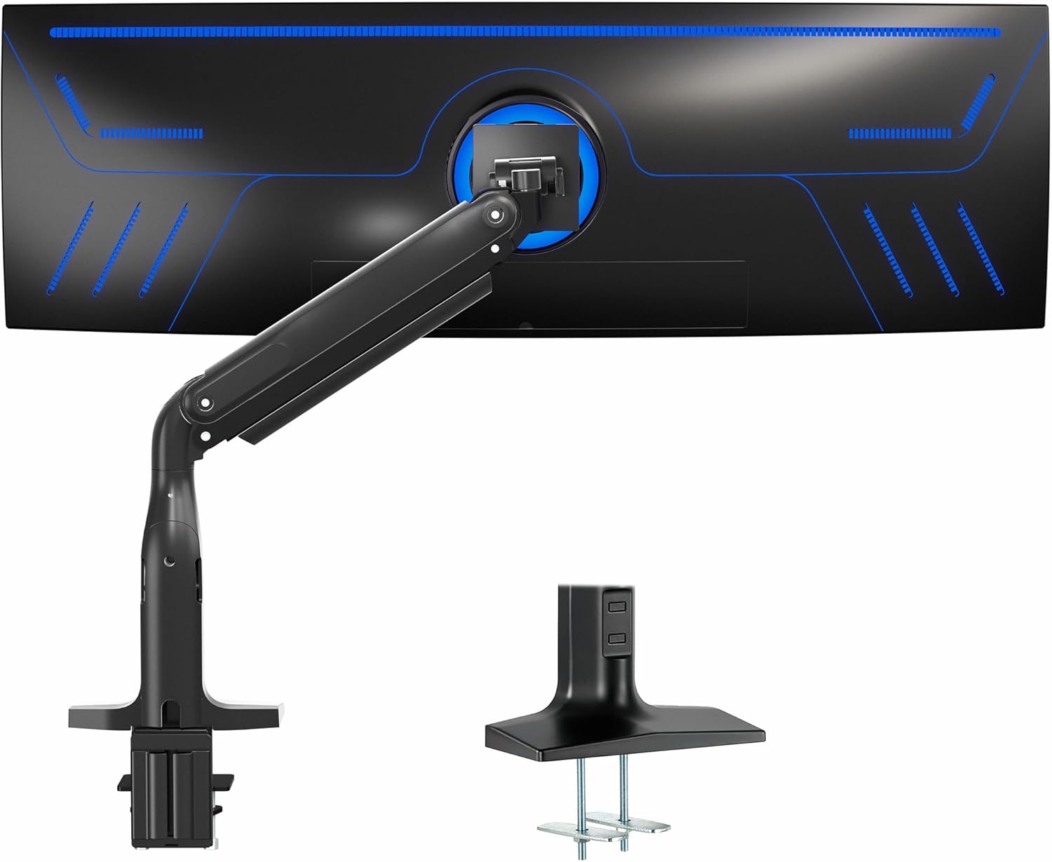 VIVO Aluminum Ultrawide Monitor Stand, Classic, Fits up to 49 inch Computer Screens, Single Articulating Pneumatic Arm, C-Clamp and Grommet Desk Mount, Max VESA 200x100, Black, STAND-V100H
