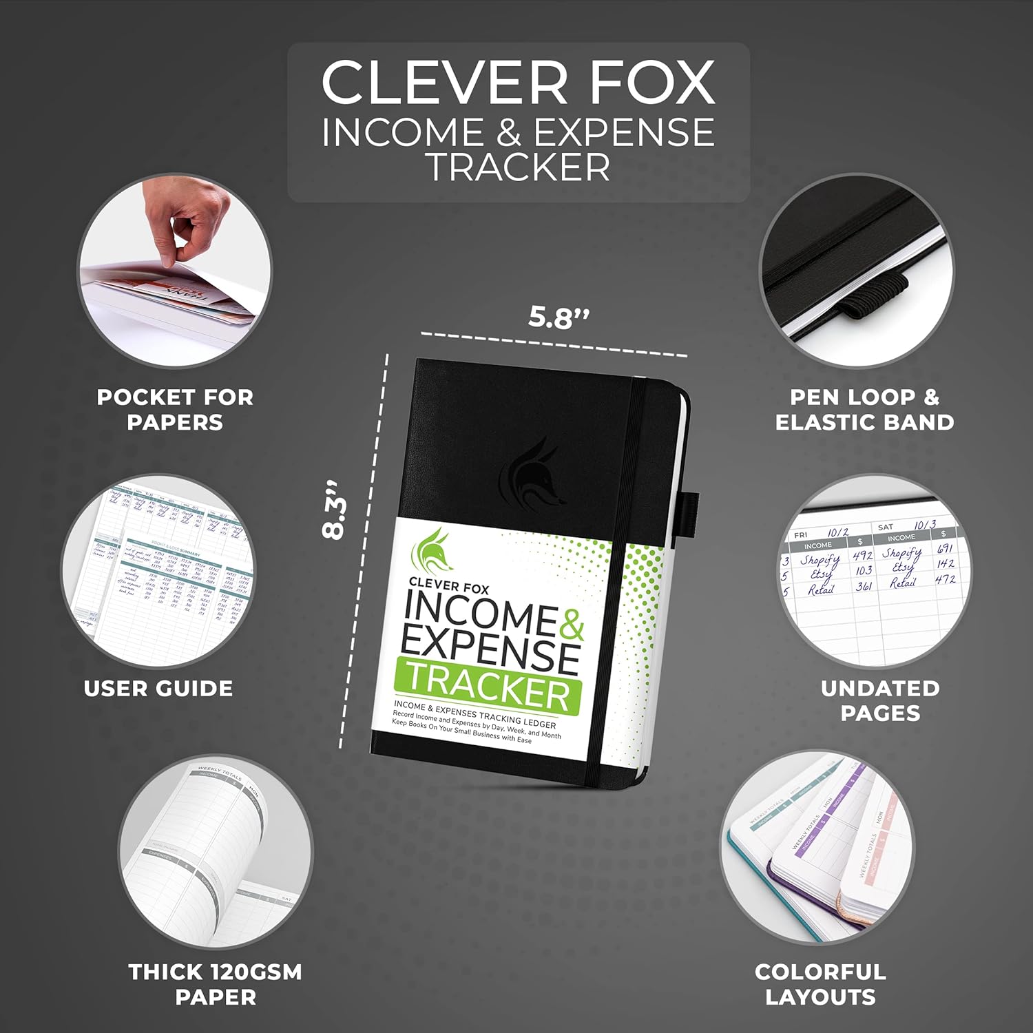 Clever Fox Income & Expense Tracker – Accounting & Bookkeeping Ledger Book for Small Business – 1-Year Record Notebook, A5 (Black)
