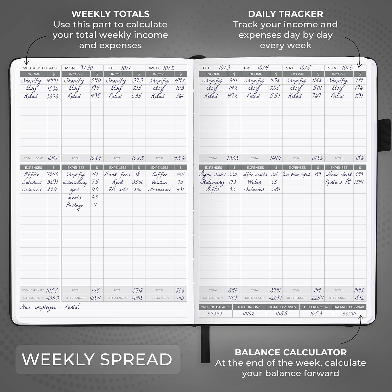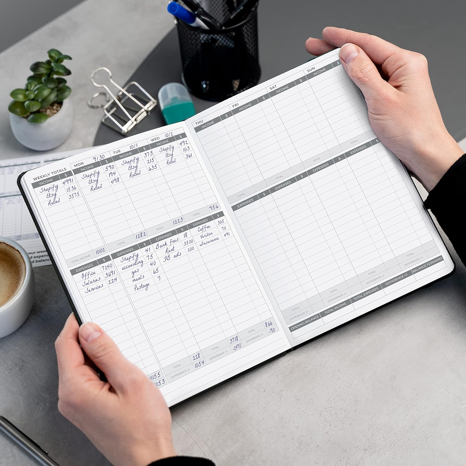- SWITCH TO EFFICIENT & STRESS-FREE ACCOUNTING: This accounting book is undated and lasts a whole year and has 113 pages, including 53 weekly views, an annual summary, empty note pages, and, at the back, a spacious pocket for receipts.