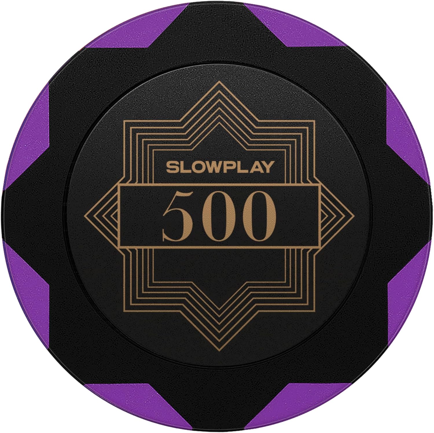 SLOWPLAY Nash Clay Poker Chips, 14 Grams Heavyweight Clay Composite, 40mm Large Chips in Bulk, Pack of 50 with Denomination of 500