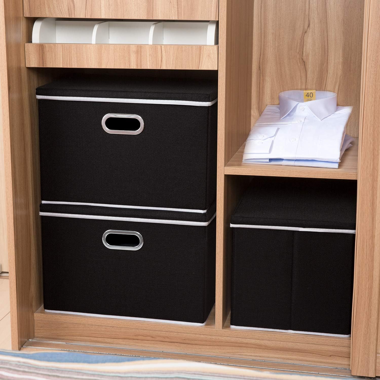 PRANDOM Large Foldable Storage Boxes with Lids [3-Pack] Fabric Collapsible Storage Bins Organizer Containers Baskets Cube with Cover for Home Bedroom Closet Office Nursery Black(17.7x11.8x11.8)