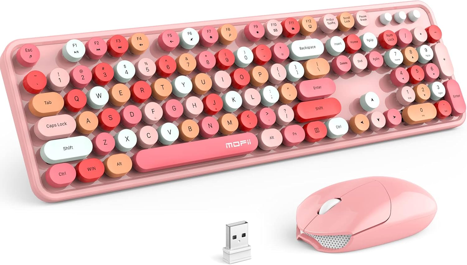 MOFII Wireless Keyboard and Mouse Combo, Pink Keyboard, 2.4GHz Retro Full Size with Number Pad & Cute Wireless Mouse for Computer PC Laptop Notebook Mac Windows XP/7/8/10 (Pink-Colorful)