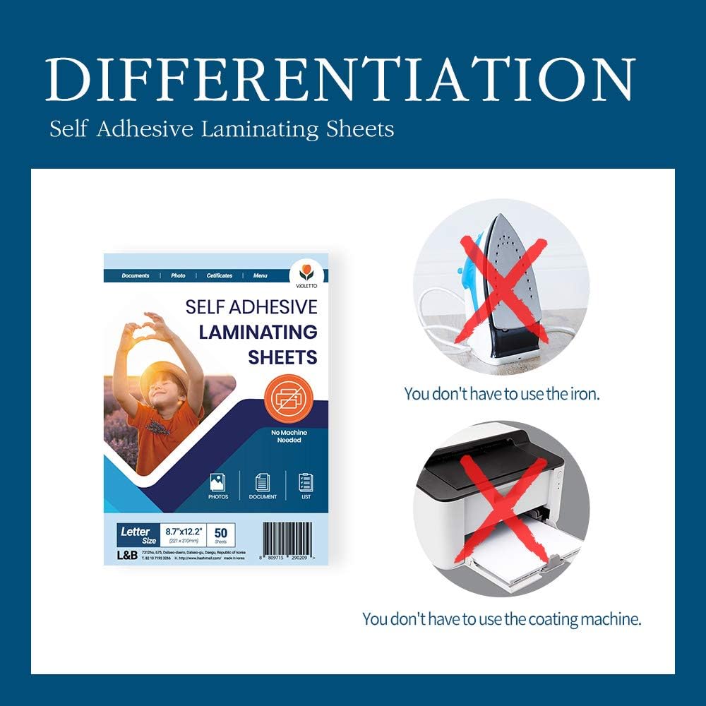 Self Stick Laminating Sheets 8.5 x 11 Inches, 4mil, Pack of 50, No Heat, No Machine, Peel and Stick Laminating Sheets, Self Adhesive Contact Paper, Self Sealing Clear Vinyl Stickers by VIOLLETO