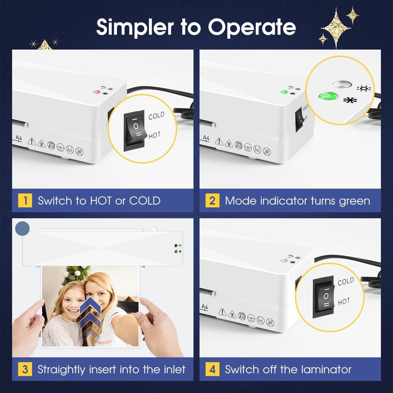 - 🆗One Button Operation, Widely Uses: Move the switch to HOT or COLD to auto work. Crenova laminator provides easy, quick, bubble- and wrinkle-free lamination. It is ideal for home, office and school tasks, e.g. painting, menu, letter, certificate, postcard, photo, ID card, tag.