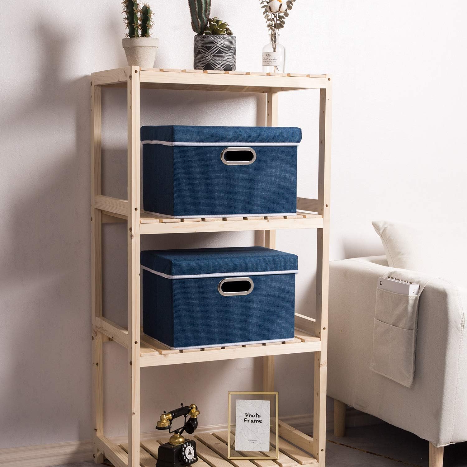 - 【Fashionable Bins】Designed to match interior decor and style in any room in the home or office. Enjoy the relaxing ambiance of the soft royal blue and natural white neutral color scheme.