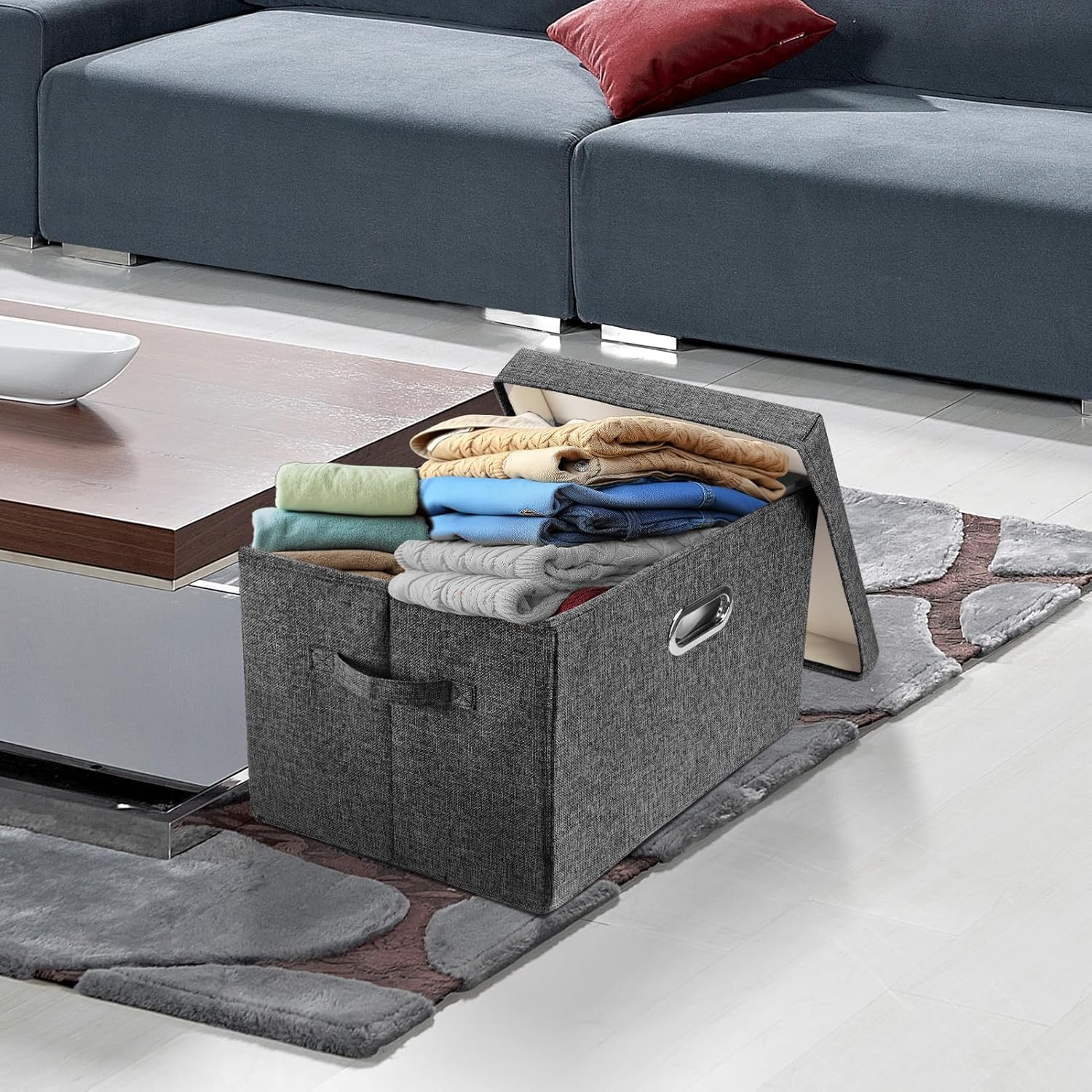 - Large organizing bins can help reduce and hide a lot of home and office clutter! Our large collapsible storage bins help make room organization simple! A perfect choice for bedroom organization and storage, closet storage, clothes storage, dorm storage, office storage, files, papers, toys, nursery organization.