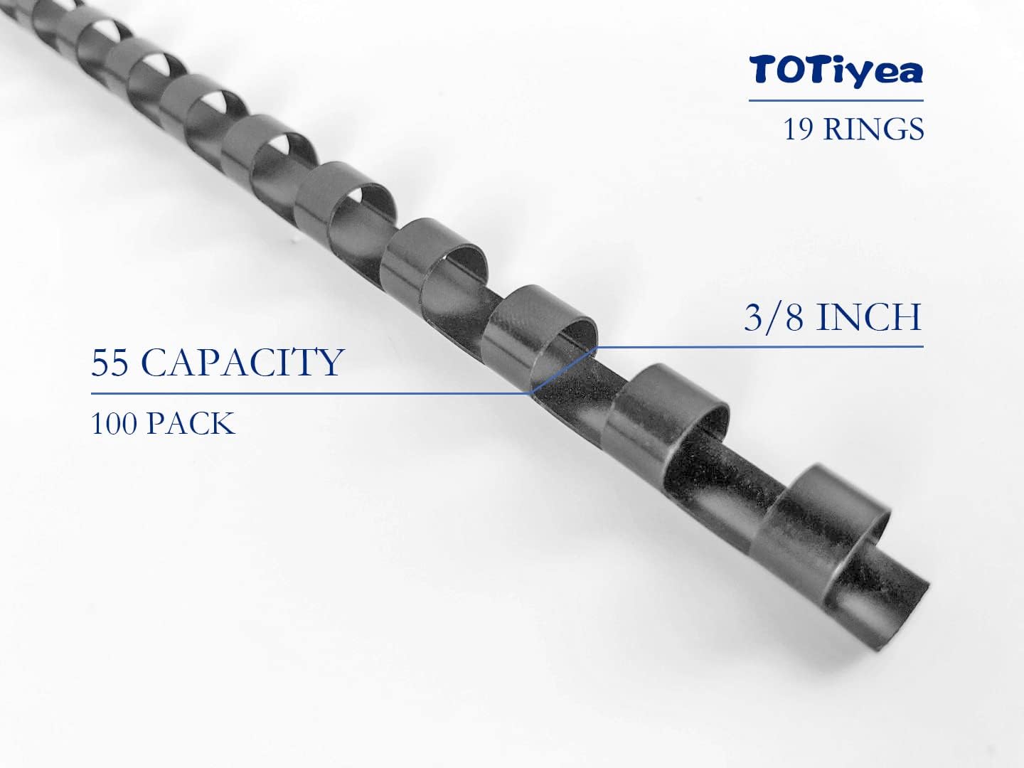TOTiyea 100 Pack Plastic Comb Binding Spines,3/8 Inch Diameter,60 Sheet Capacity,Letter Size (8.5x11 Inches) Black Binding Combs