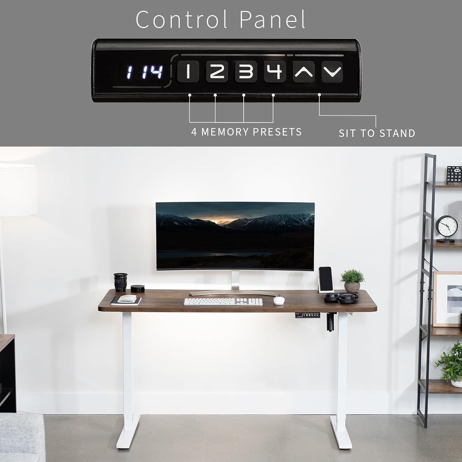 VIVO Electric 60 x 24 in Rustic Standing Desk, Memory Height Adjustment, 1B Series, One-Piece Vintage Brown Top, White Frame, DESK-KIT-1W6N