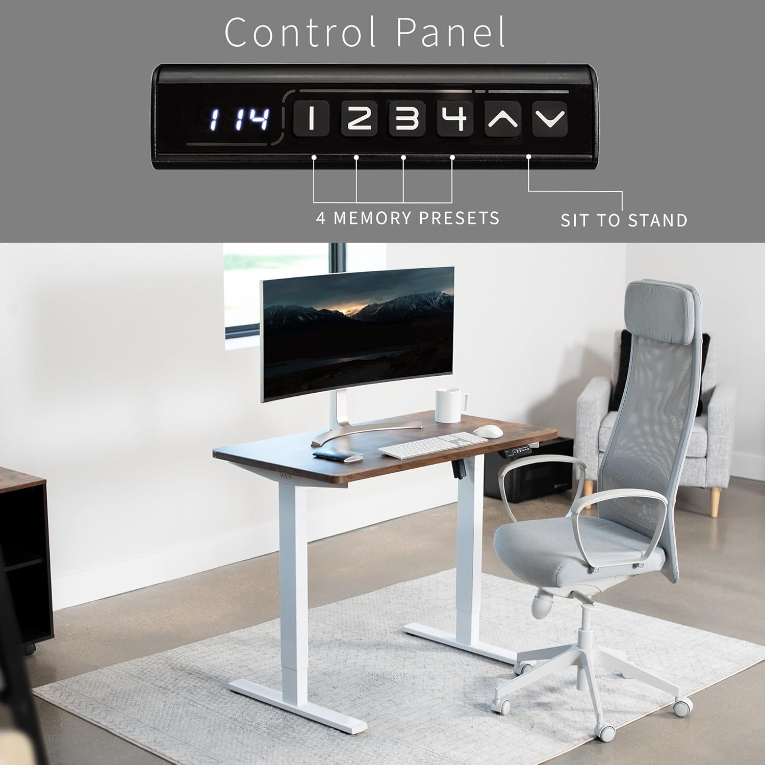- Powerful Electric Motor: Enjoy a height range of 29.3" to 48.5" with this frame’s powerful motor and strong legs using telescopic height adjustment. The easy-to-use push-button controller features 4 memory presets to save your desired heights