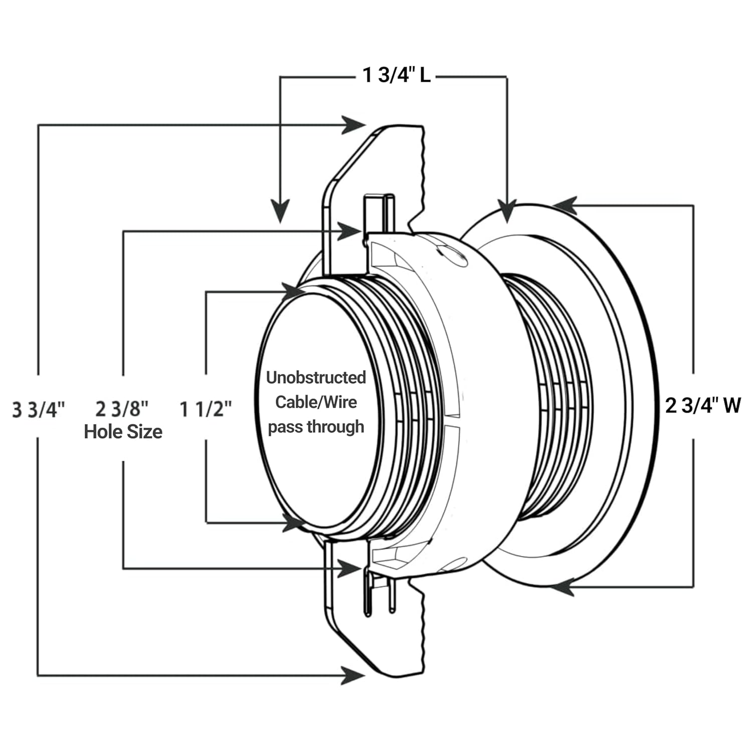 - Works for all surfaces 3/8” to 1” thick, use a hole saw 2 3/8" drill bit or other type power/hand saw