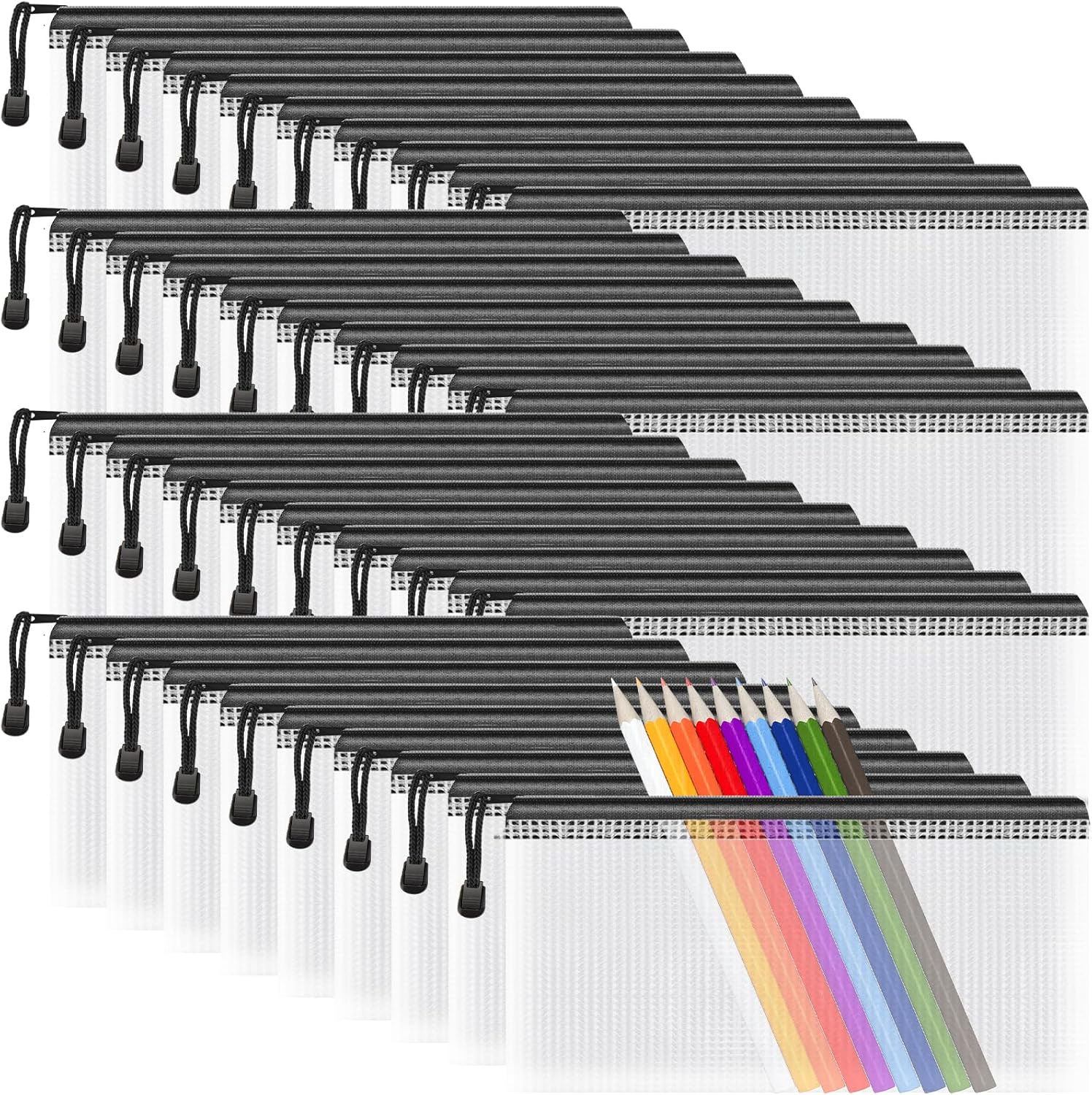 Umriox Pencil Pouches Bulk, 9.2 x 4.7 in (Black, 36 Packs), Mesh Zipper Pouch Pencil Case, Small Zipper Pouches for Bill Stationary Cosmetics Travel Storage