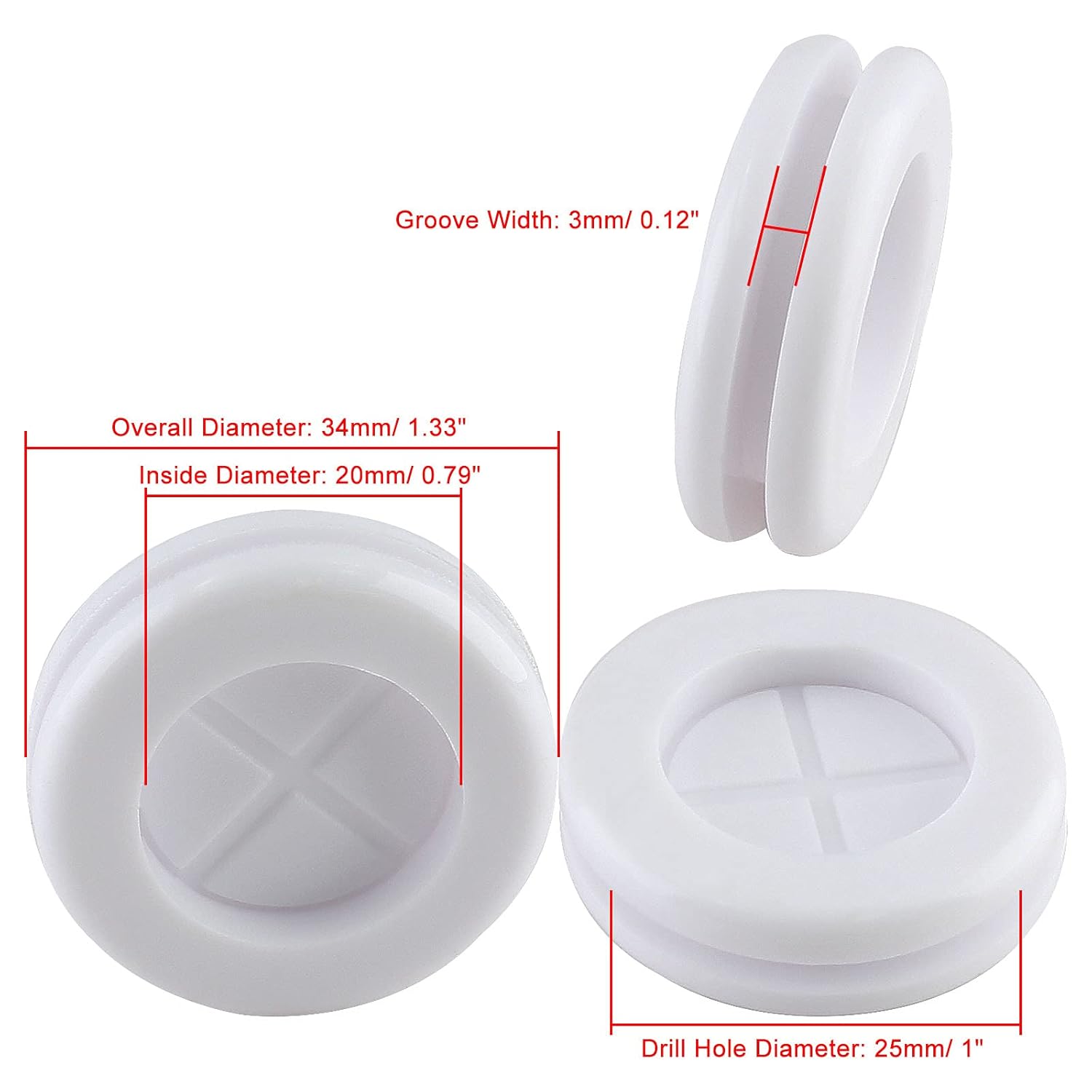24 Pack 0.79" Inside Diameter 1" Drill Hole Rubber Grommet, Firewall Plug Grommet Rubber Grommets Wire Protection, Double Sided Round (White)