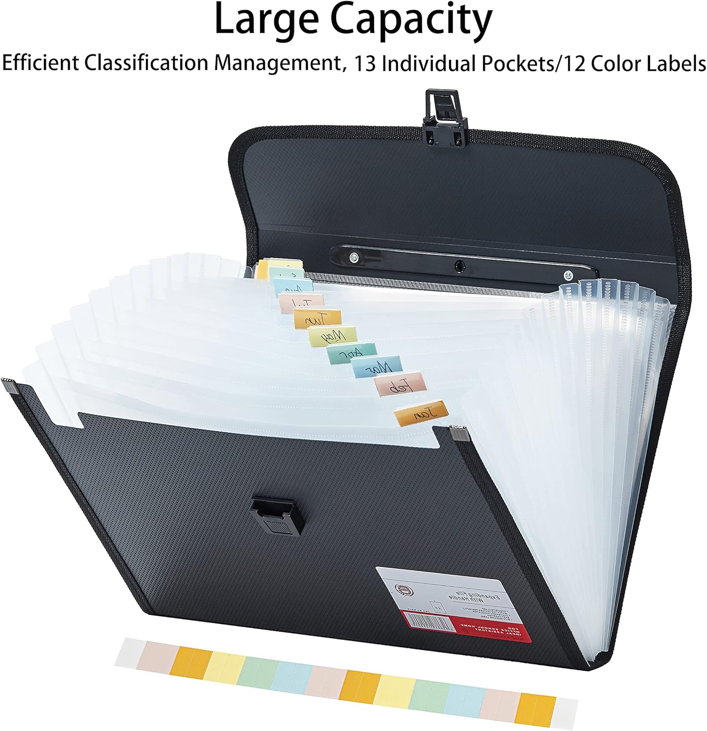 - ✔ 【 400 Sheets Capacity 】 Holds up to 400 sheets capacity. 12 Dividers 13 Pockets paper organizer folder accordian file organizer could be used as monthly file folders. Comes with tab inserts so you can label each file and find it easily. The pockets are tabbed to allow for adding labels, ensuring each section can be instantly identified for quick access.