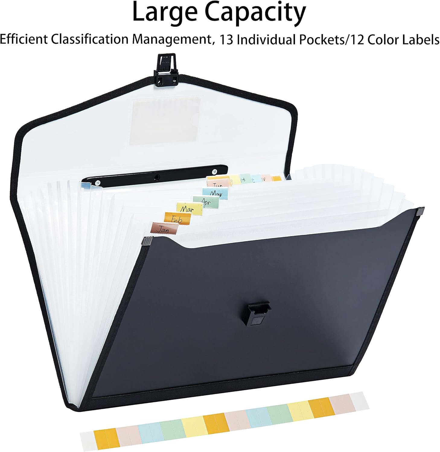 - ✔ 【 400 Sheets Capacity 】 Holds up to 400 sheets capacity. 12 Dividers 13 Pockets paper organizer folder accordian file organizer could be used as monthly file folders. Comes with tab inserts so you can label each file and find it easily. The pockets are tabbed to allow for adding labels, ensuring each section can be instantly identified for quick access.