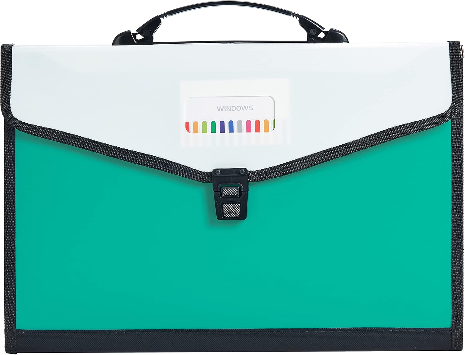 Leagl Size 13-Pockets Expanding File Folder with Handle, Plastic Accordion Filling File Folder Expandable Monthly Portable Paper Document Organizer for Office School & Home (Green)