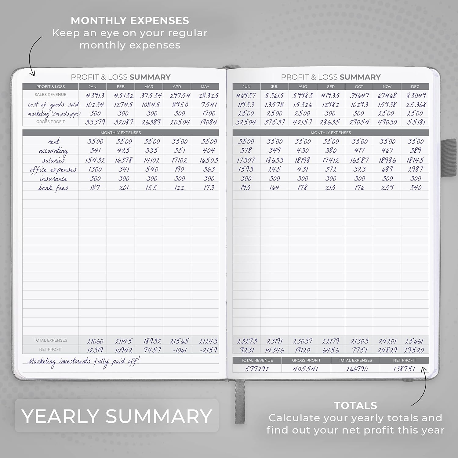 - COMPACT A5 FORMAT & DURABLE DESIGN: This bookkeeping record book comes in A5 format (5.8 by 8.3 inches) and has an eco-leather hardcover, 120gsm no-bleed paper, elastic, pen loop, bookmark, pocket for notes, and a user guide.