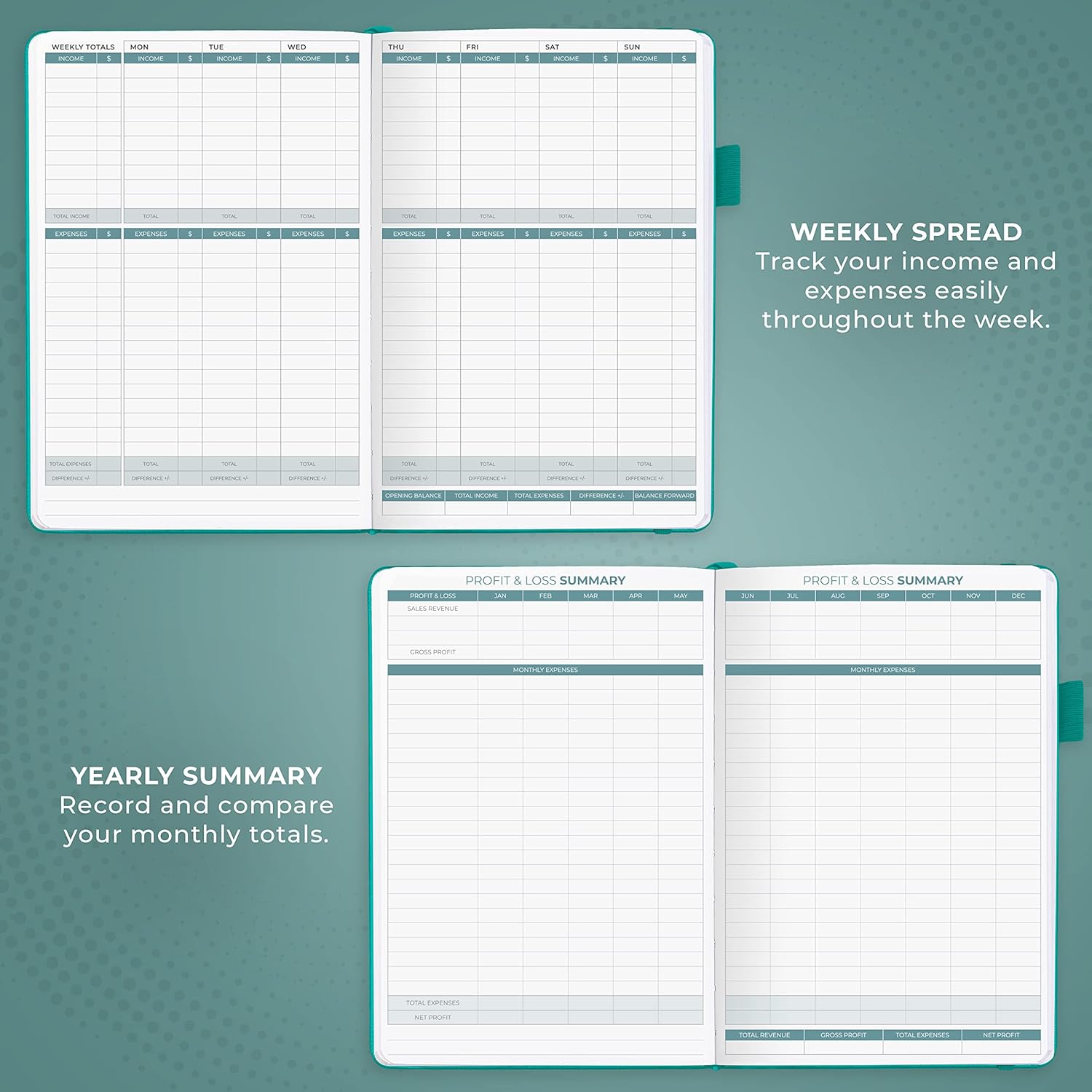 - COMPACT A5 FORMAT & DURABLE DESIGN: This bookkeeping record book comes in A5 format (5.8 by 8.3 inches) and has an eco-leather hardcover, 120gsm no-bleed paper, elastic, pen loop, bookmark, pocket for notes, and a user guide.