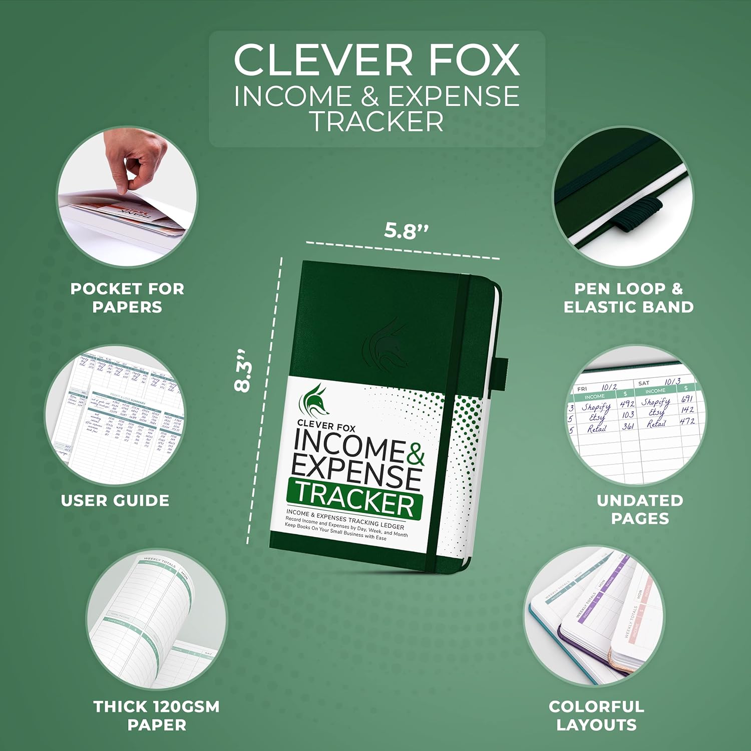 Clever Fox Income & Expense Tracker – Accounting & Bookkeeping Ledger Book for Small Business – 1-Year Record Notebook, A5 (Dark Green)