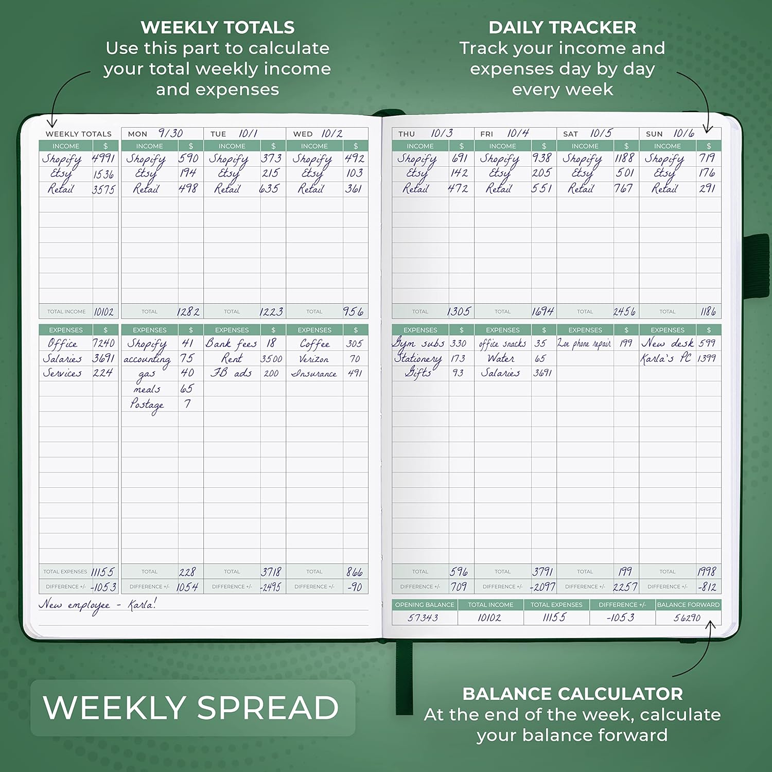 - SWITCH TO EFFICIENT & STRESS-FREE ACCOUNTING: This accounting book is undated and lasts a whole year and has 113 pages, including 53 weekly views, an annual summary, empty note pages, and, at the back, a spacious pocket for receipts.