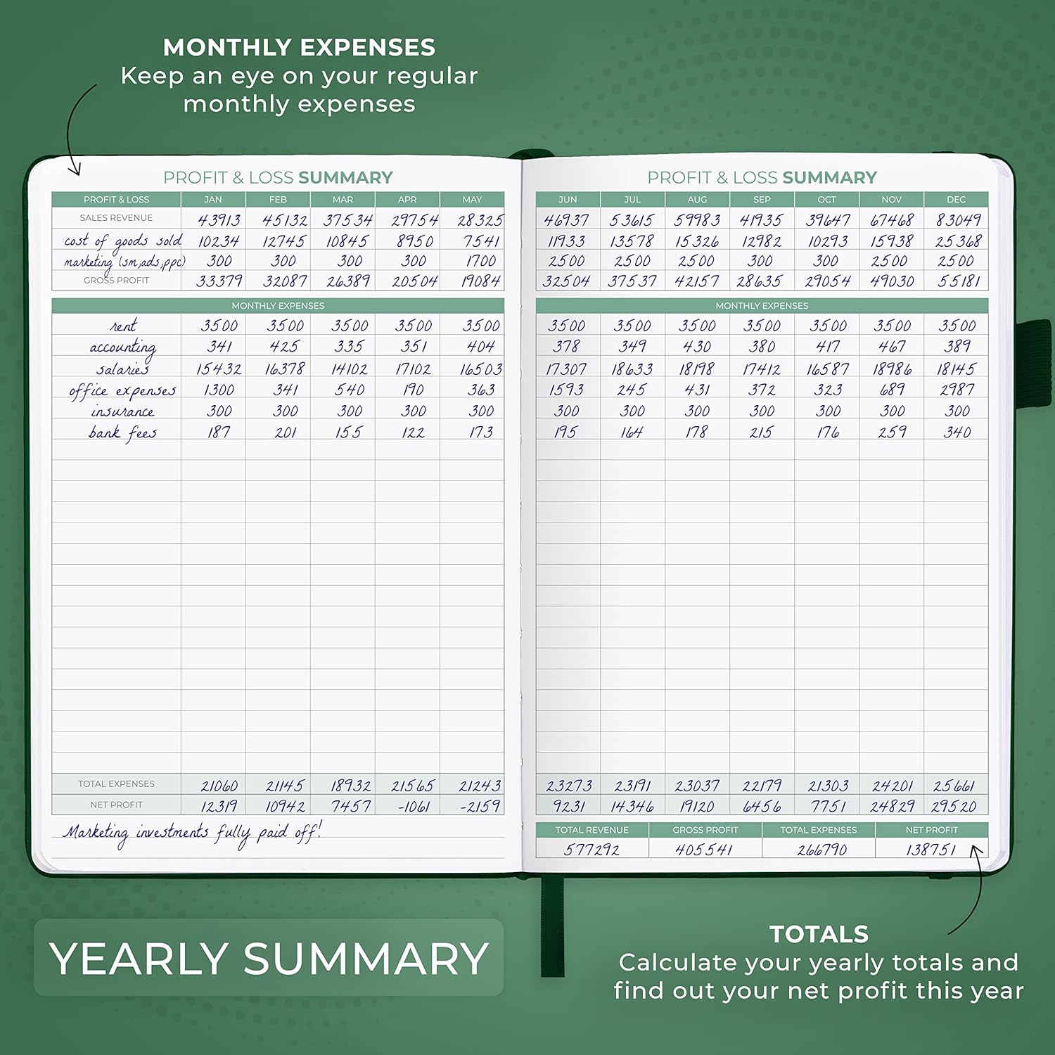- COMPACT A5 FORMAT & DURABLE DESIGN: This bookkeeping record book comes in A5 format (5.8 by 8.3 inches) and has an eco-leather hardcover, 120gsm no-bleed paper, elastic, pen loop, bookmark, pocket for notes, and a user guide.