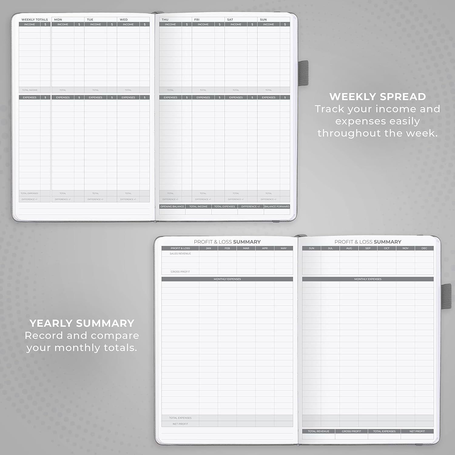 - SWITCH TO EFFICIENT & STRESS-FREE ACCOUNTING: This accounting book is undated and lasts a whole year and has 113 pages, including 53 weekly views, an annual summary, empty note pages, and, at the back, a spacious pocket for receipts.