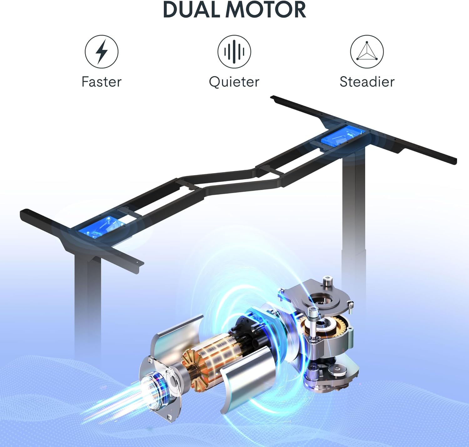 - 【ELECTRIC HEIGHT ADJUSTABLE LIFT SYSTEM】The dual-motor lift mechanism offers smooth height adjustments, ranging from 28.9" to 48.2" (including 1" desktop thickness), and operates quietly (under 50 dB) while lifting and lowering the desk.
