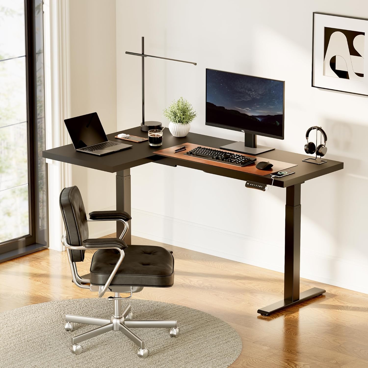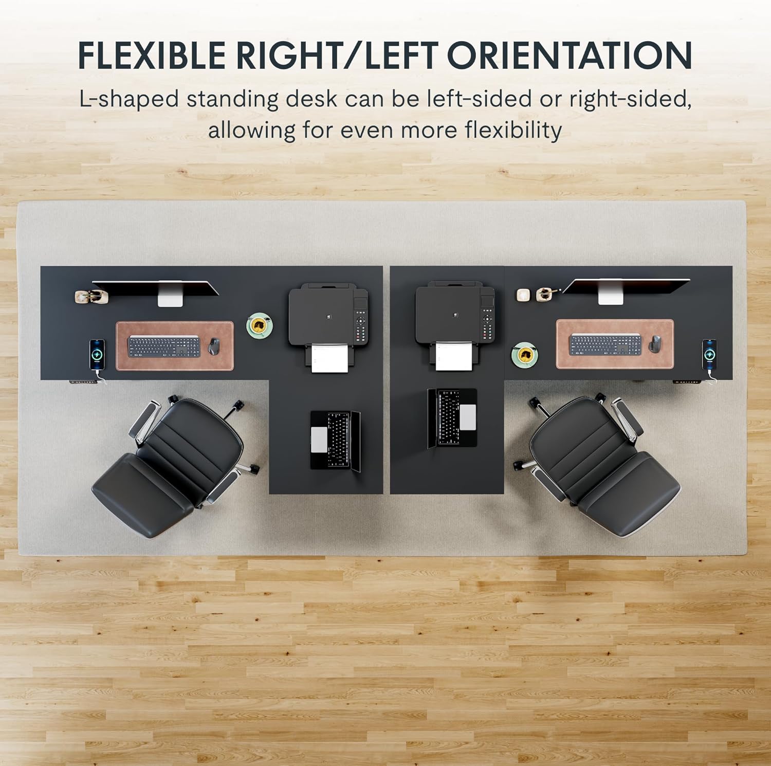 FLEXISPOT Pro Corner Desk Dual Motor L Shaped Computer Electric Standing Desk Sit Stand Up Desk Height Adjustable Desk Home Office Table with Splice Board, 63x40 Black(2 Pakages)