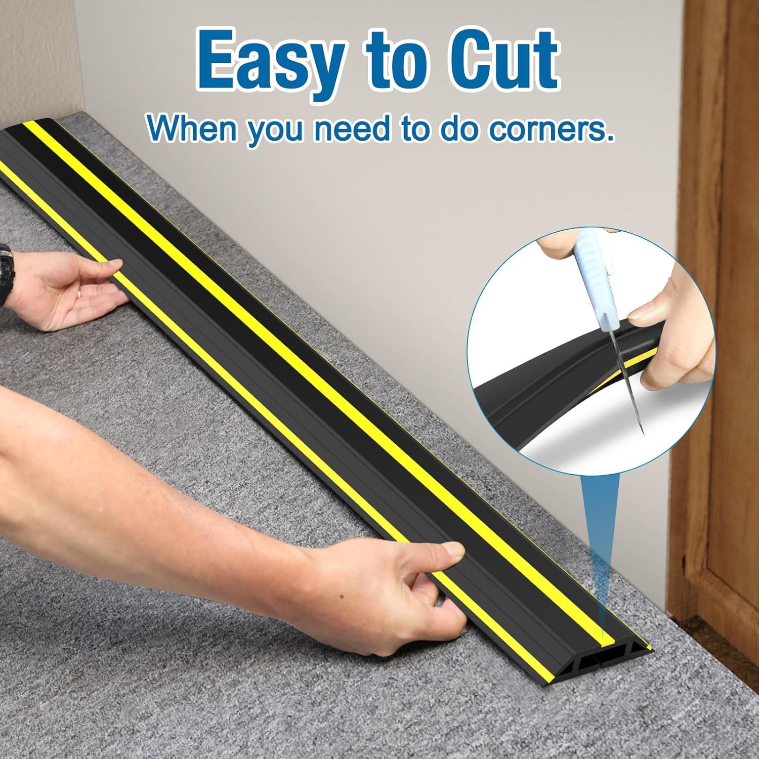 - Yellow Warning Line -- 3 bright yellow stripes runs along on the top of the floor cable cover for its visibility and safety, it serves as a warning role to tell people to pay attention to that sign and in case of tripping over by accident
