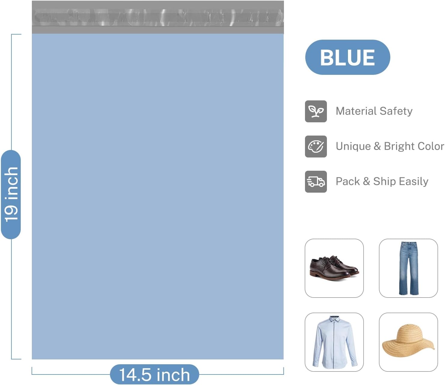 - Provides Confidentiality: METRONIC poly mailers 14.5 x 19 are made from thick, opaque material. Making it hard to puncture or damage. METRONIC large poly mailers not only effectively protects your privacy during transportation, but also ensures the safe arrival of your goods.