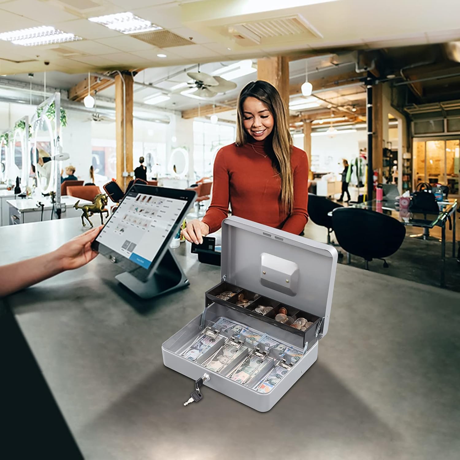- APPLICABLE OCCASIONS: The cash box is constructed of durable steel, which is solidly built and won't simply burst if dropped. It is suitable for home, office and courtyard sale. It is convenient for keeping cash and coins safe.