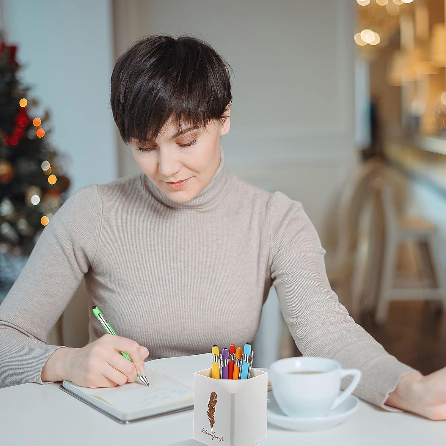 - Modern nice-touch metal pens: these ballpoint pens have a responsive click action, bright finished barrel, matching colored capacitive stylus tip, and ultra-smooth black ink