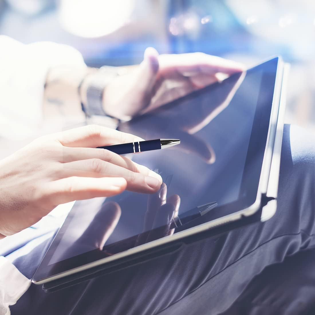 - 【PACKAGE INCLUDING】: 12 PCS Ballpoint Pens with Stylus, color: Dark Blue.