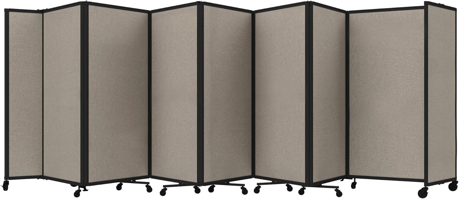 - THOUGHTFUL DESIGN: Made to roll around easily on wheels, this portable room separator also features locking casters to hold it in place. It comes with a trackable surface, sound-dampening fiberglass panels and a folding design for easy storage.